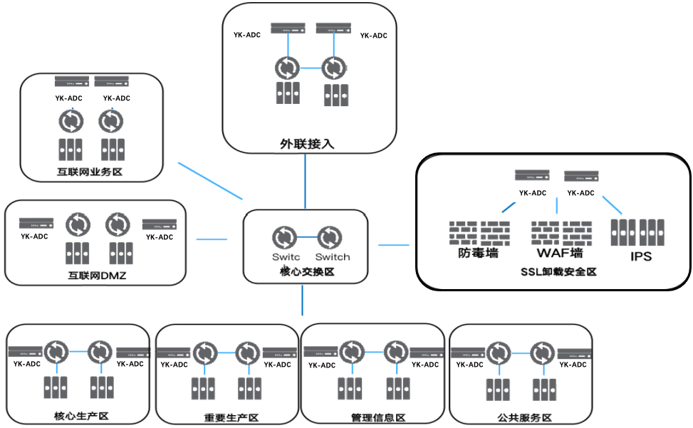 2、网银接入LLB+GSLB结合,完美解决进站出站流量多链路负载、双中心智能调度,智能聚合多条运营商链路,整合双中心应用系统资源